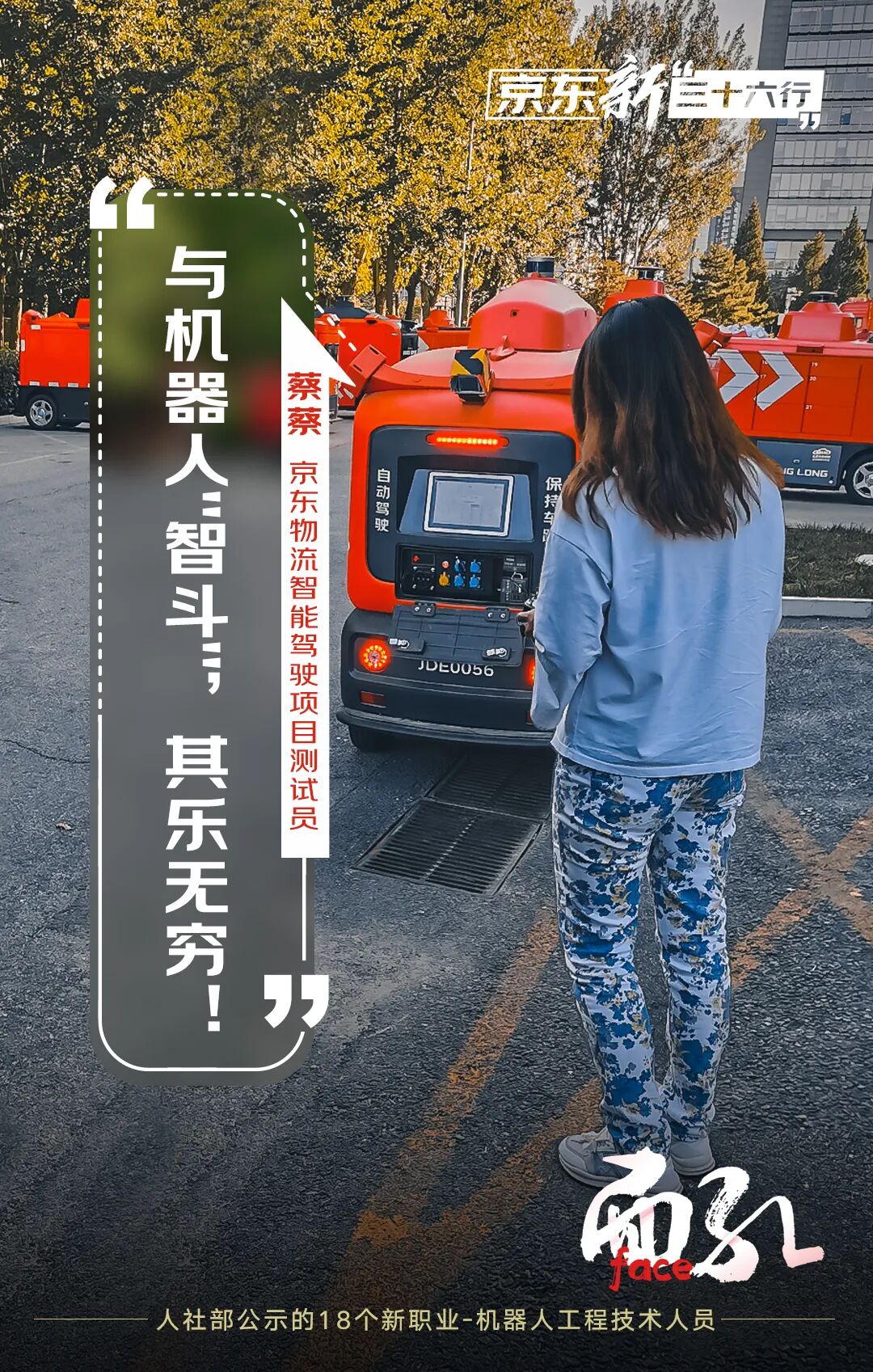 我是蔡蔡,在京东物流X研究部负责智能快递车系统集成测试,疫情期间,依托无接触配送优势,智能快递车已经成为末端配送、抗疫保供的重要力量。