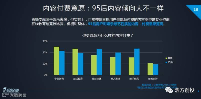 95后更愿意为竞技比赛、娱乐综艺、素人表演类的内容付费。