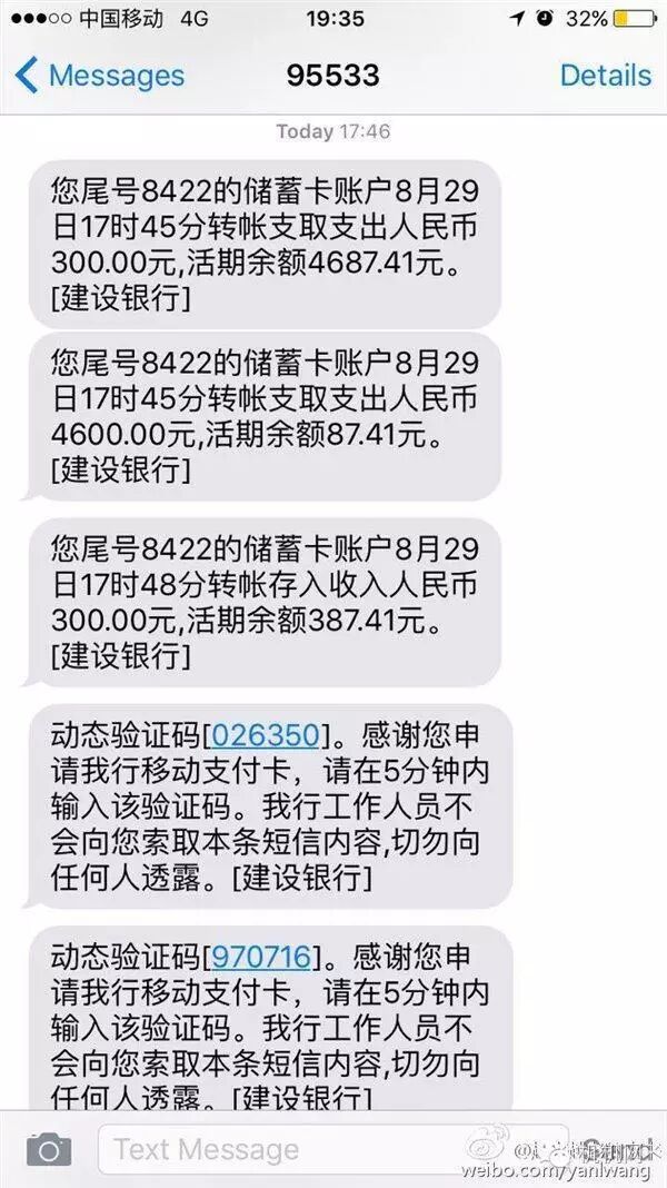 (注:大家请看这个短信的抬头,的确是95533,以下同,光就这步,估计很多人就要吓尿了)我们继续看:
