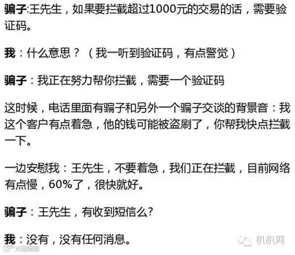 6、骗取验证码。当你信以为真以为对方在帮你的时候。他就会提出另外一笔钱数额太大,需要验证码。而你收到验证码的时候,其实这时的验证码是骗子将你的钱骗走的验证码,一旦告诉他,彻底结束。