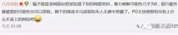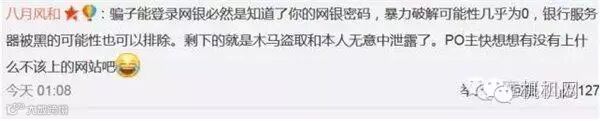 最后一位用户大胆猜测了为何原po主的网银密码会被骗子知道: