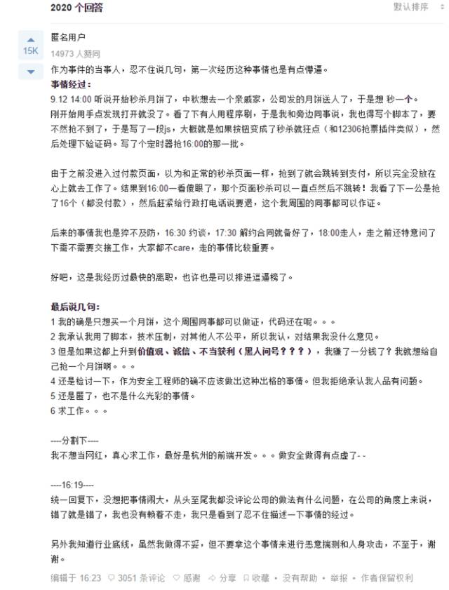 除了那些业界的大V之外,可以从以下这位知乎网友的回帖中看到一部分对此事的态度。