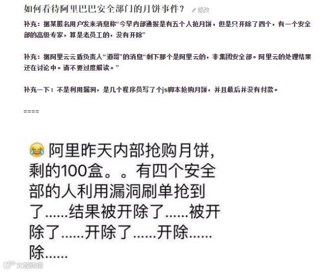 来自全国各地的围观吃月饼的群众马上就炸了,迅速在知乎上秒问了这个问题,而目前这个问题也得到了各种回答,只是好像支持阿里的并不多。