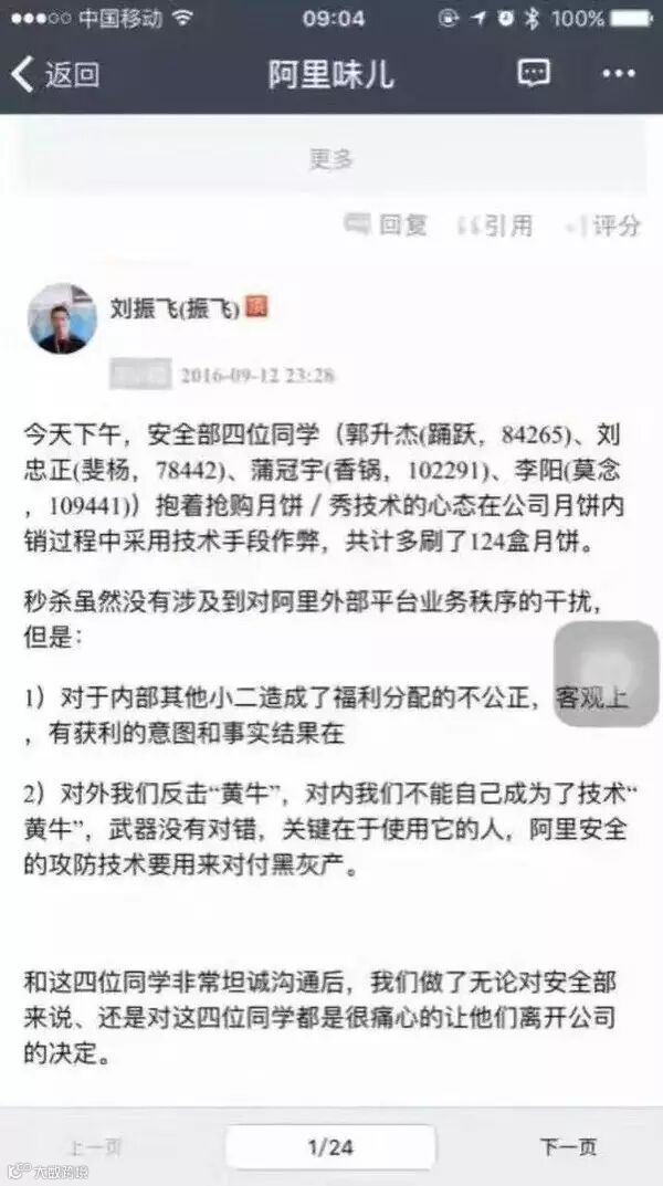 11年前一个馒头引发的血案震撼上映,11年后的今天,124盒月饼引发的“血案”在阿里巴巴发生。据阿里内部人士爆料,9月12日下午,有4名程序员因为使用技术手段抢购内销月饼,结果被开除。而开除的原因是他们在抢购月饼时采用技术手段作弊,对内部其他员工造成福利分配不公正,而且这种行为有“黄牛”意识。