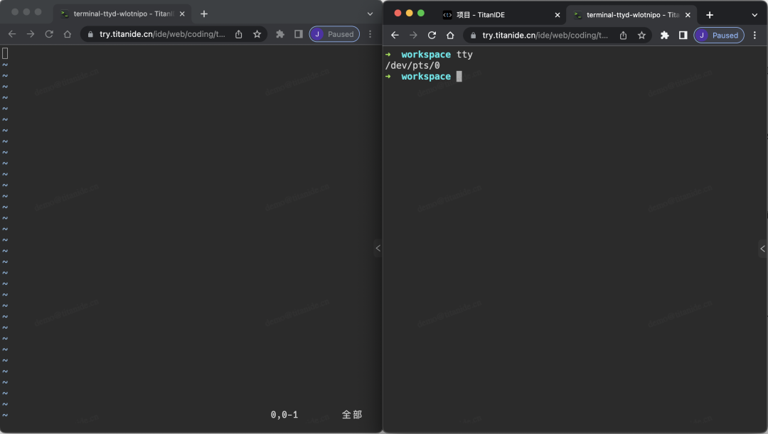 本文所涉及的所有命令行都是在 TitanIDE 创建一个开箱即用的 Terminal 上面执行的,如果您还未了解过 TitanIDE,请点击这里了解详情。简单来说,TitanIDE 是一款云原生集成开发环境, 最少只需一台虚拟机,十分钟即可安装好,立即开启您的全云端开发之旅!