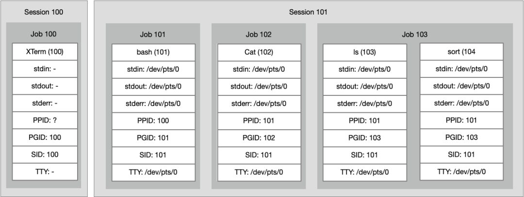这里的基本思想是:每个管道都是一个作业,因为每个管道内的进程都需要被同时操控(stopped, resumed, killed)。这也是为什么能够 用 kill(2) 向一整个进程组发送信号的原因。默认情况下,fork(2) 会将新创建出来 的子进程放到与其父进程相同的进程组,因此,例如一个 ^C 键就会同时影响到父子进程 。但 shell 有些不同,作为其 session leader 职责的一部分,它每次创建一个管道的时候都会创建一个新的进程组。