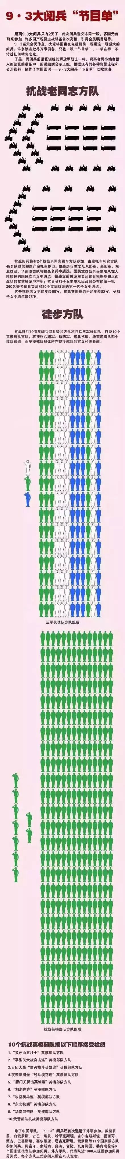 明天上午,“9·3”纪念抗战胜利70周年阅兵将正式拉开序幕。70分钟的阅兵式中有哪些亮点值得关注?来看看大阅兵“节目单”,先睹为快!