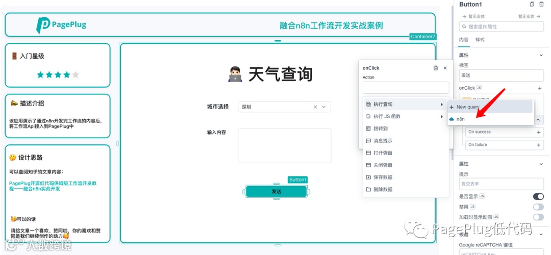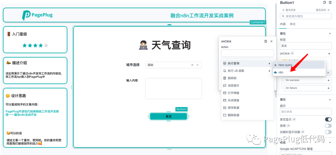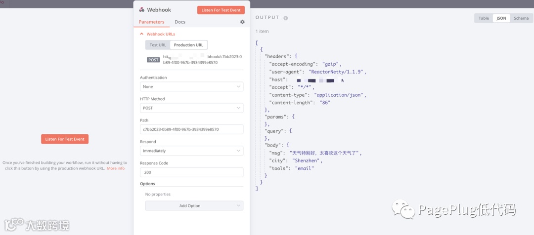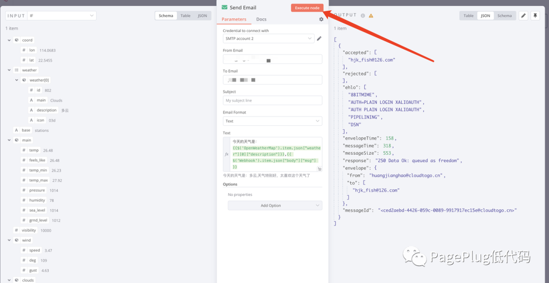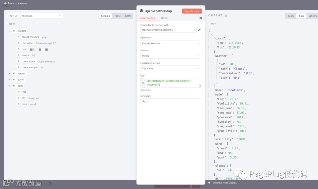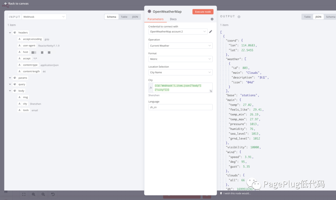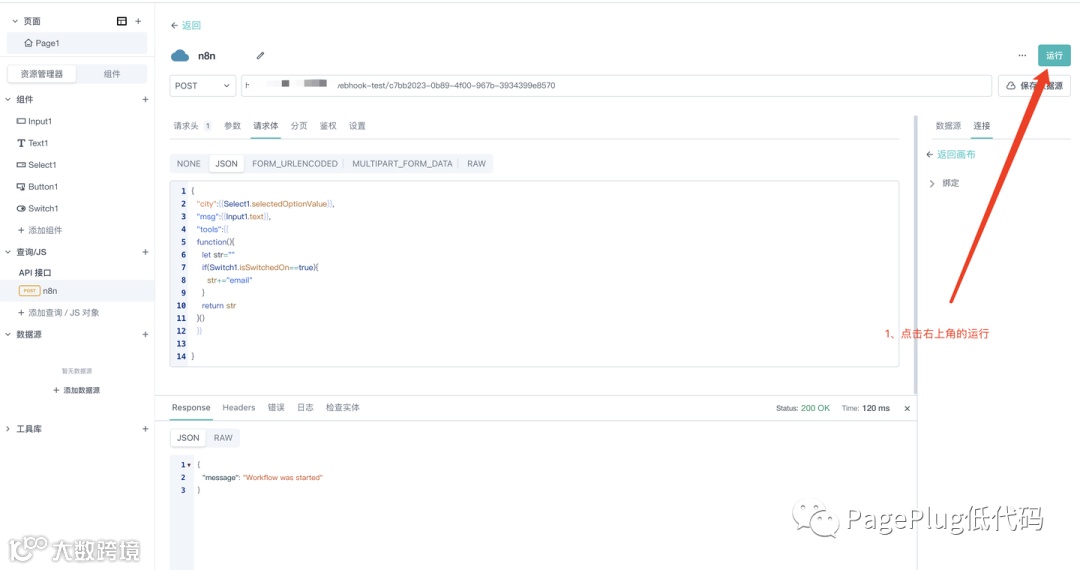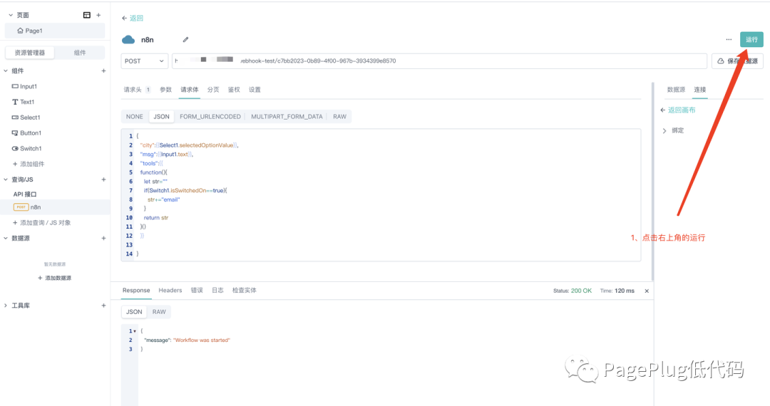 如果没有响应的话,点击了Execute node后,在PagePlug的n8n api中,再点击一下运行即可