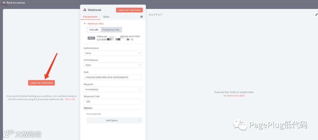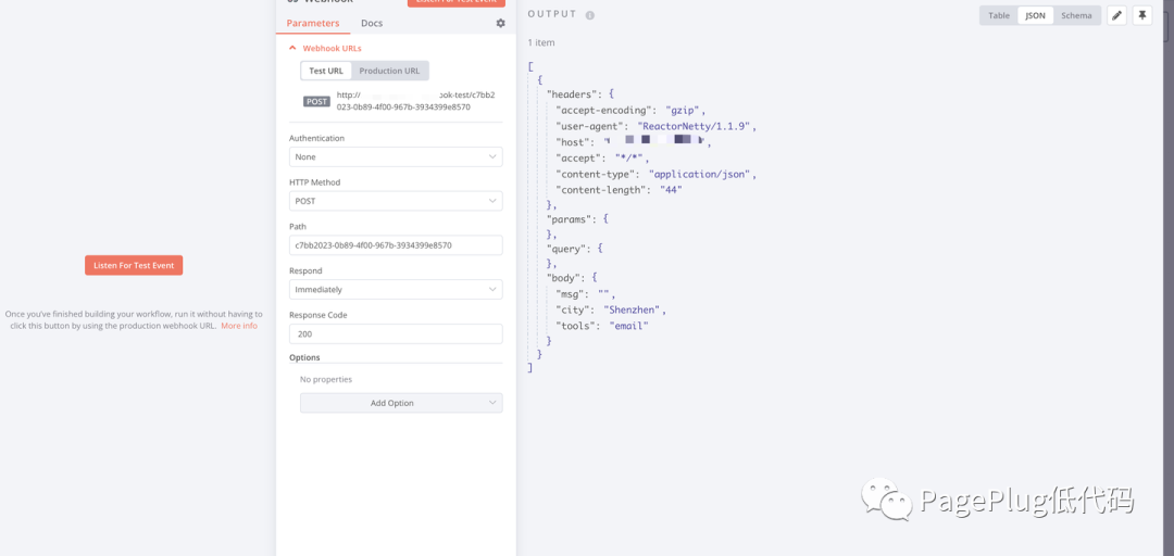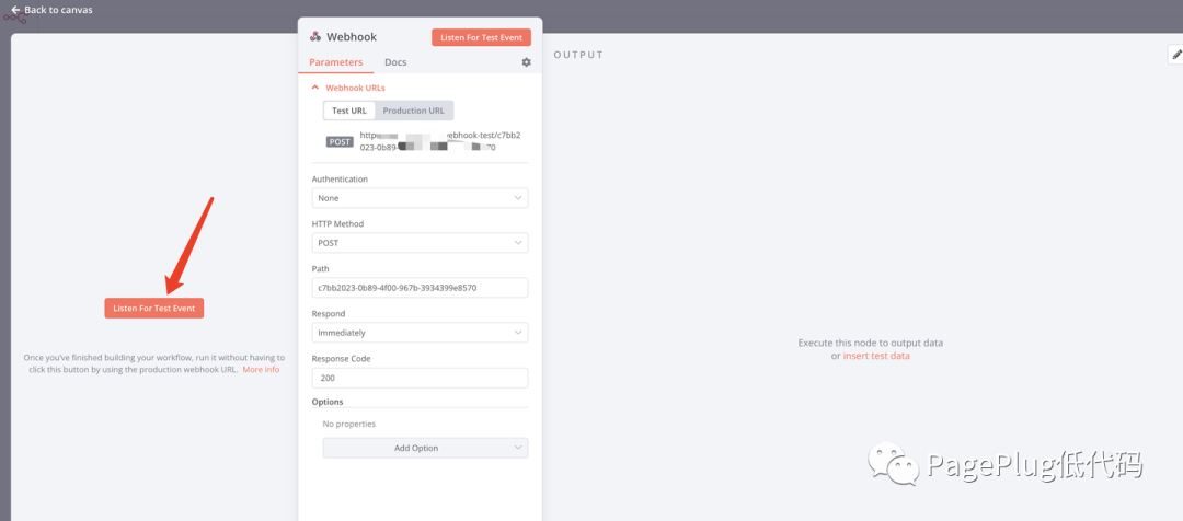 点击配置左侧的Listen For Test Event,随后在PagePlug中点击api的运行