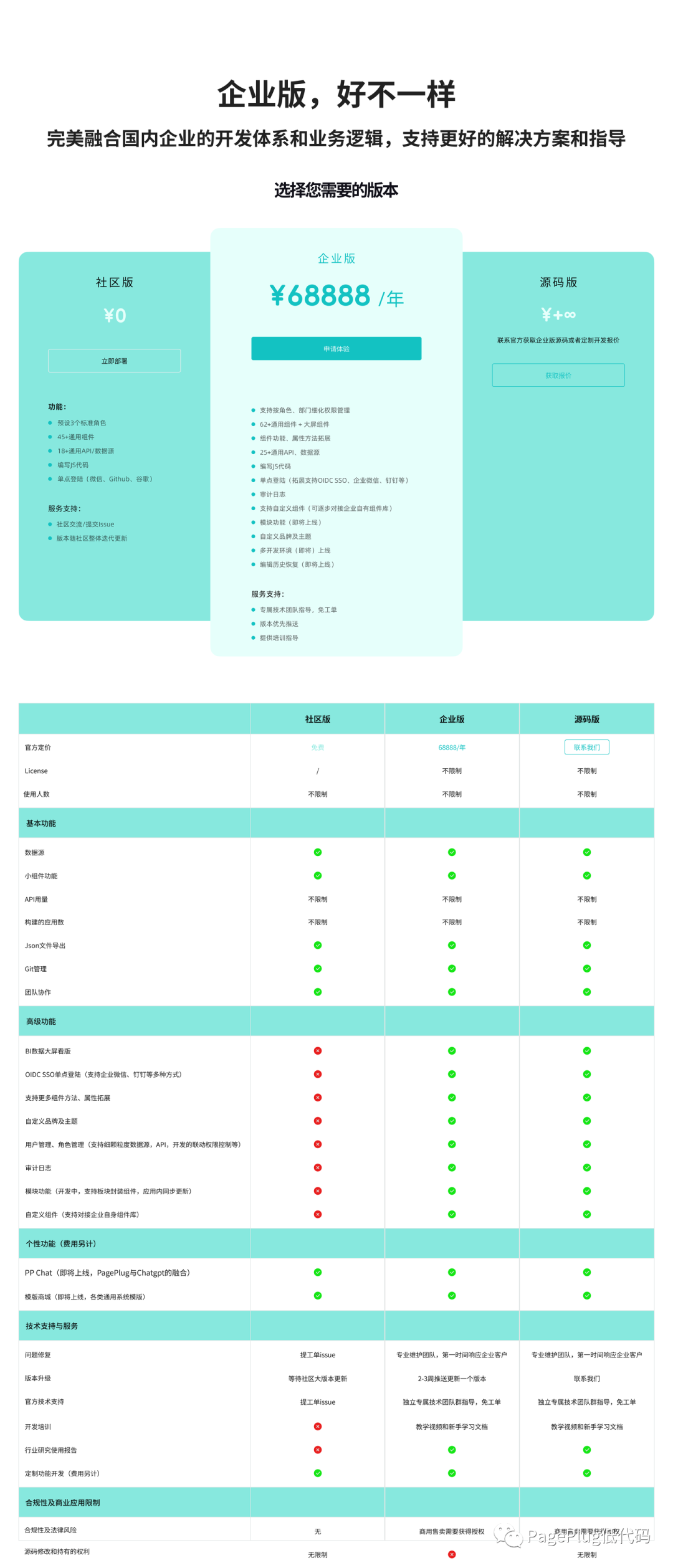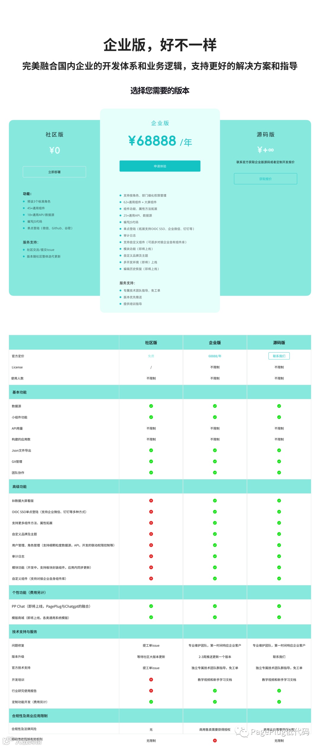 如果想了解PagePlug企业版/商业版的价格及更多功能,可放大下方图片查看