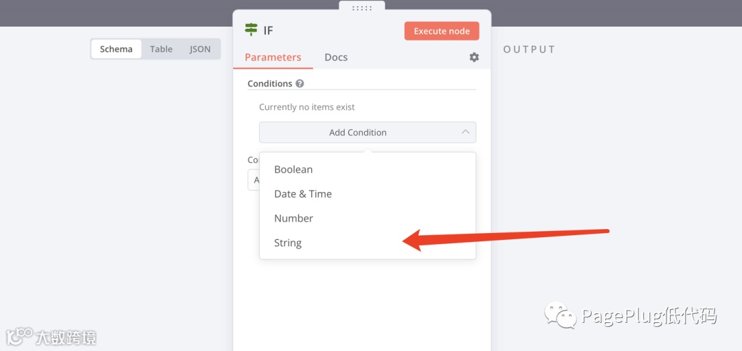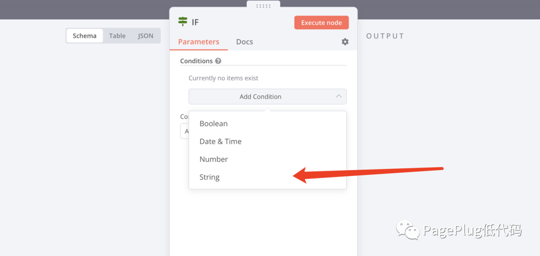 在【Conditions】选项中点击【add condition】按钮,选择String类型