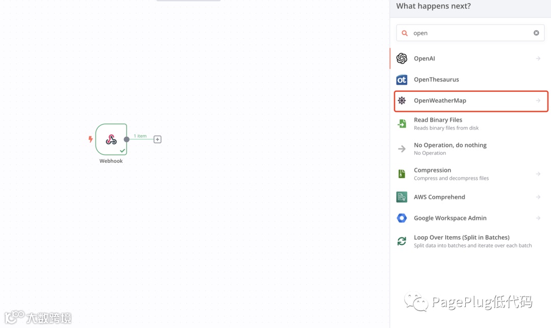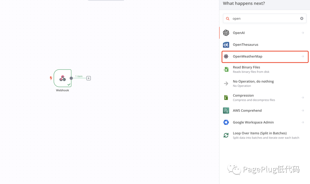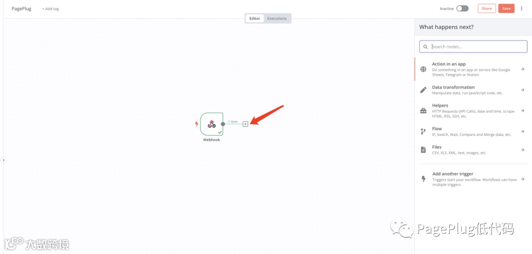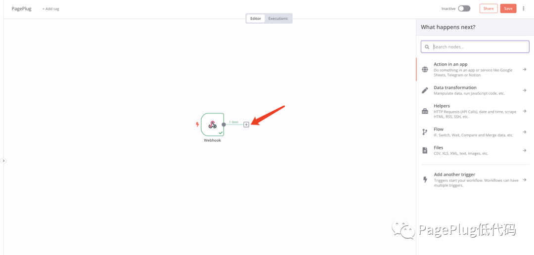 我们可以点击Webhook组件旁边的+号,新增一个节点
