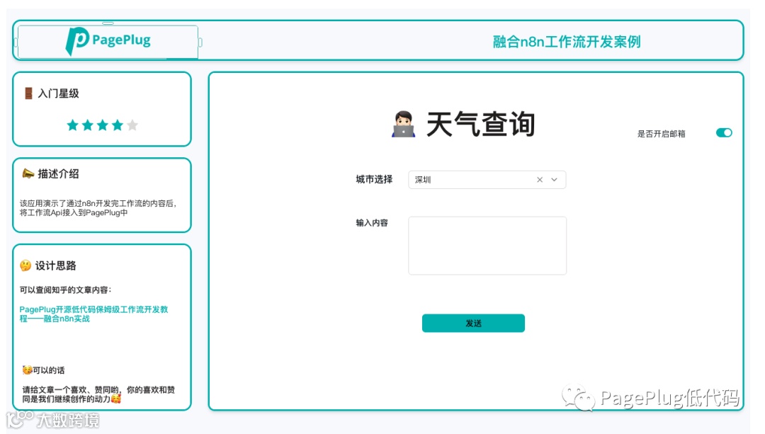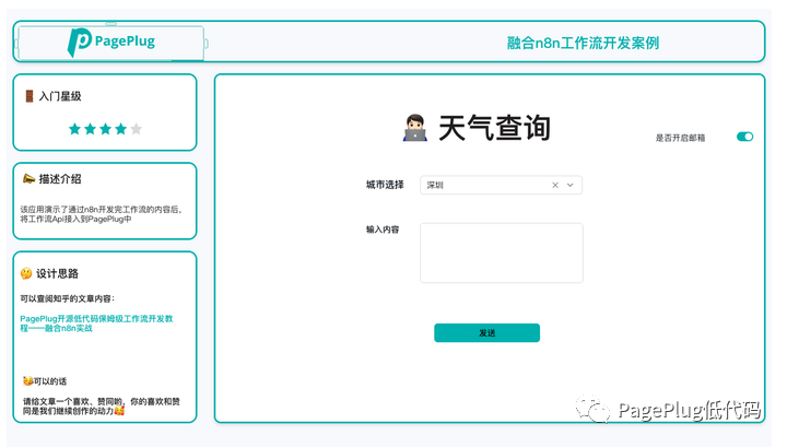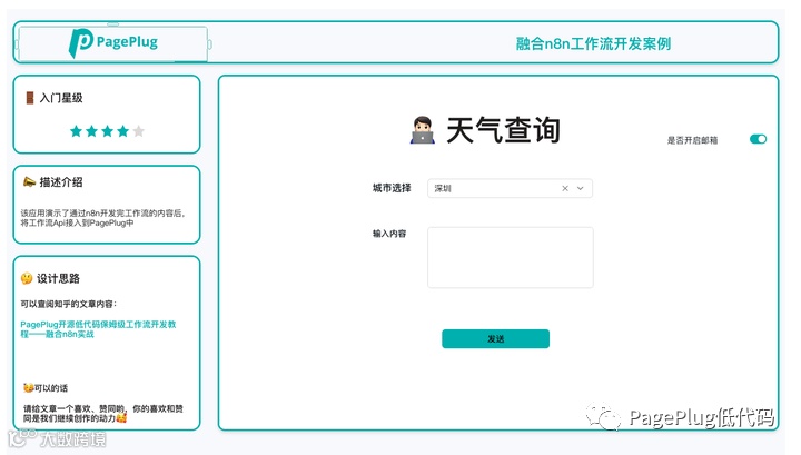 PagePlug这边就快速的先简单搭建一个查询的交互界面,也可以加一些表情包优化下布局
