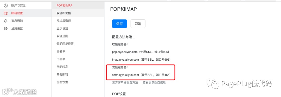 在【邮箱】—【POP和MAP】,即可看到Host和Port的配置信息