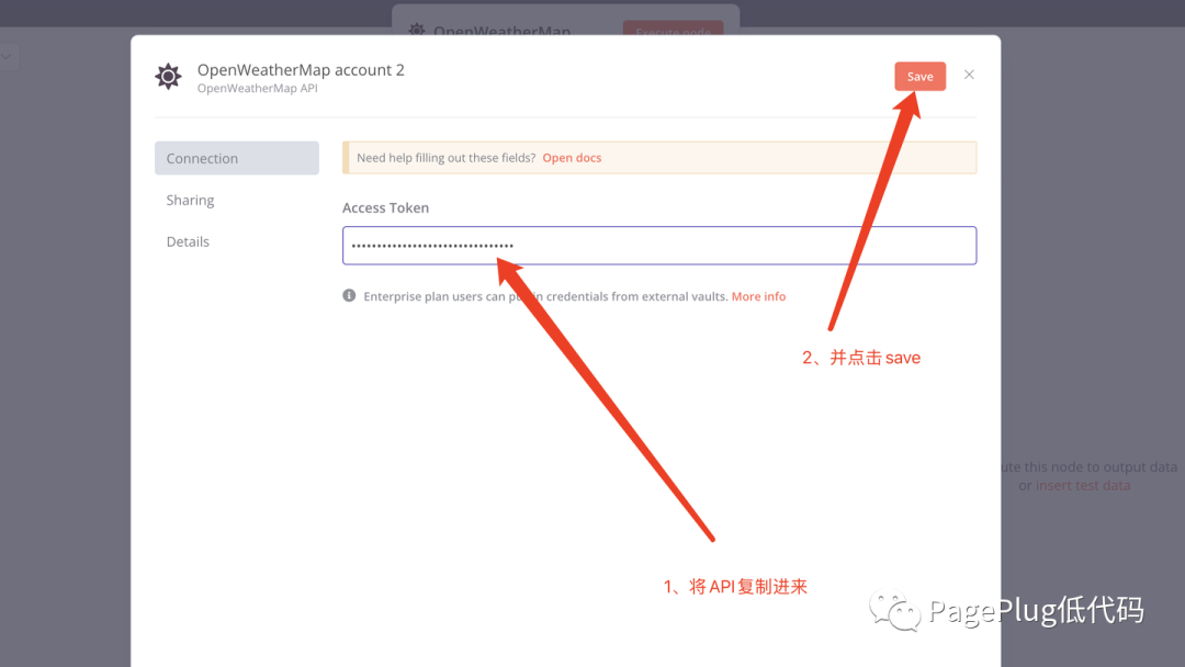 将我们上一步在OpenWeather注册使用的api,复制到Access Token中