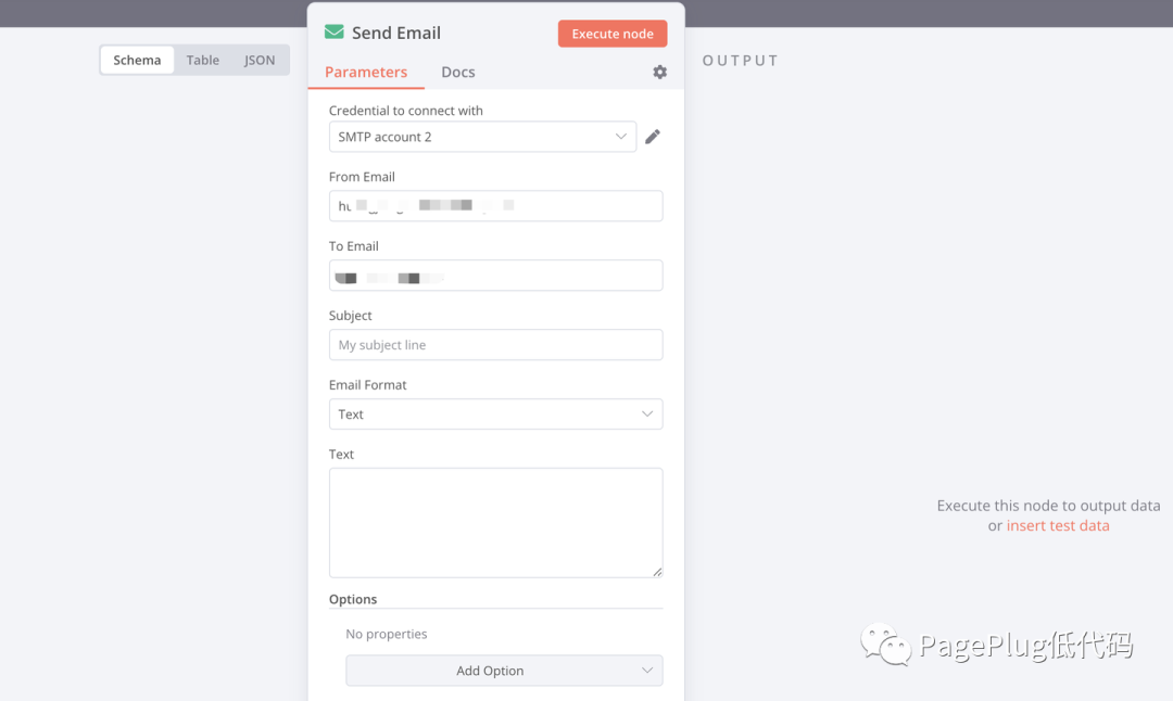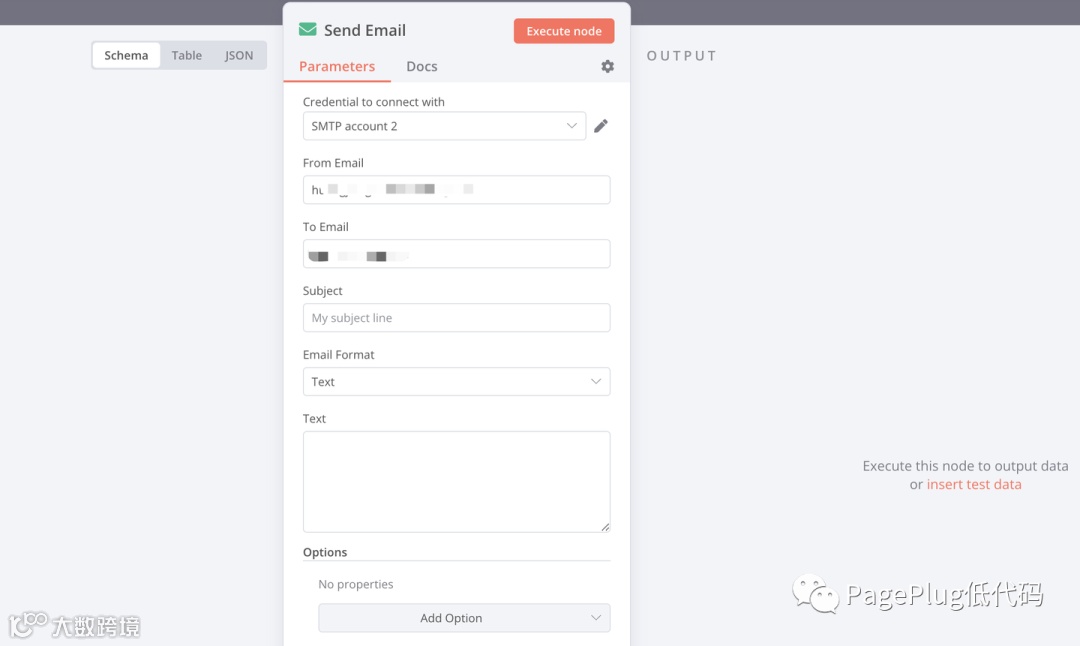 在Value2选项的配置为email,并点击下右上角的Execute node,即可响应