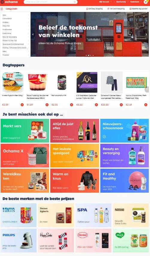 2022年1月10日,京东宣布在荷兰开启全新模式的“超级仓店”——ochama。 当日,位于荷兰鹿特丹和莱顿市的两家ochama仓店正式开业,另两家位于阿姆斯特丹和乌得勒支市的新店也将在近期开业。这两家店的问世,是京东国际化布局在东南亚之外,首次在欧洲落地独立零售品牌业务,ochama也成为荷兰首家提供包含生鲜在内的全品类线上购物的零售商。