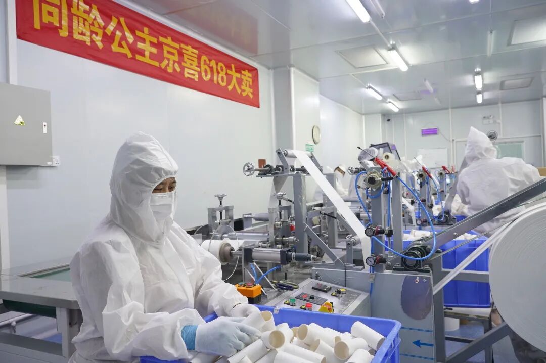 在广东东莞的洗脸巾品牌“同龄公主”生产车间里,员工正在为618带来的大量订单忙碌。作为创立仅半年的新品牌,“同龄公主”根据京喜“巾心守护”产品标准进行高质量生产,并与京喜推出多款联名商品。在京喜的帮助下,“同龄公主”销量节节攀升,今年京东618刚刚开启2个小时订单就突破18万单。作为京东面向下沉市场的战略新兴业务,京喜已与全国超过200个产业带深度合作,助推工厂型、农场型、外贸型商家数字化转型,今年618期间,超200个产业带订单量环比618前均增长超100%。