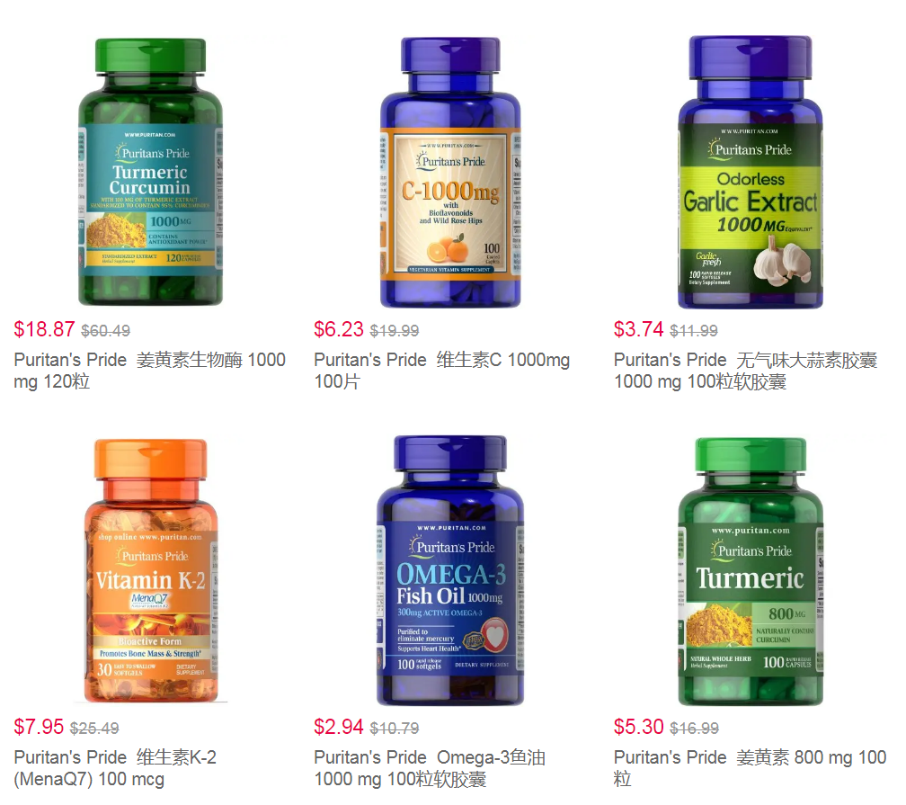 保健品 满$100立减$15,满$125立减$20,需要用码 OCT20。