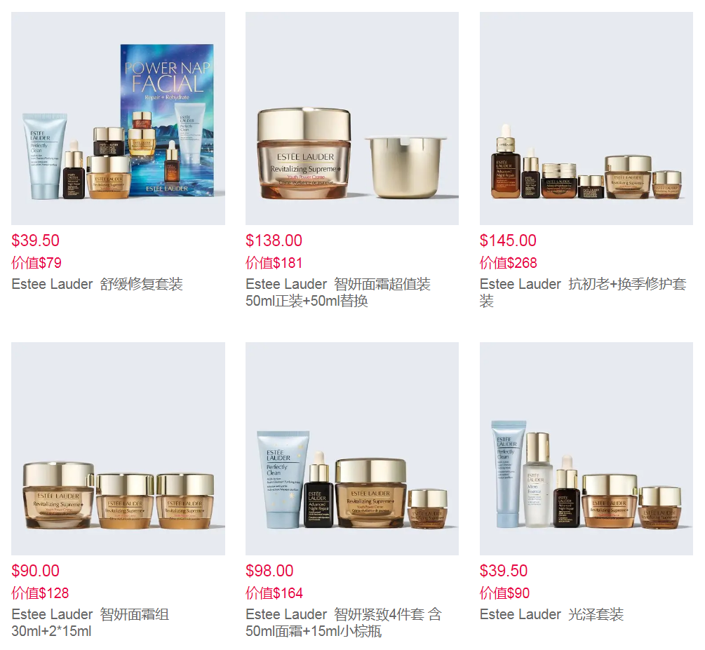 官网面霜乳液、套装热卖,订单满$75送7件护肤套装;满$125送正装智妍面霜30ml;满$160送6片微晶水面膜+白金黑钻面霜中样7ml+白金眼霜中样5ml,总价值高达$439,需用码DMELEVEN。