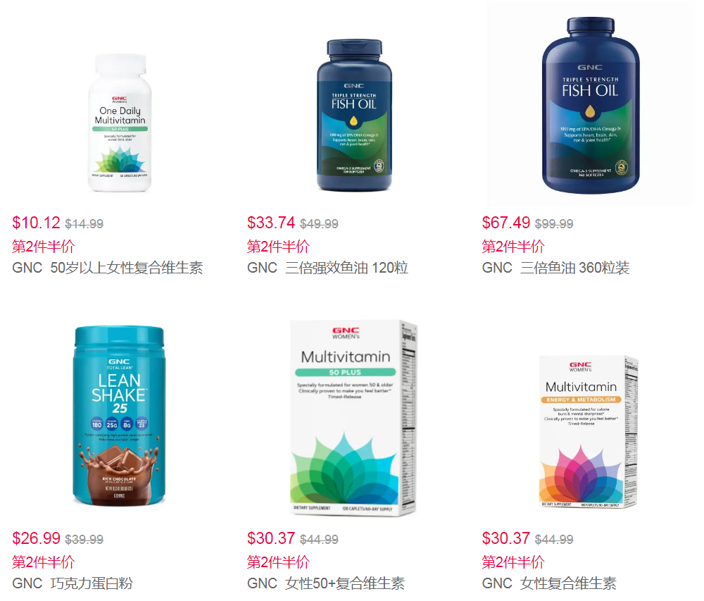 GNC 多款维生素保健品 第2件半价+9折,不需使用折扣码,购物车自动显示折扣。