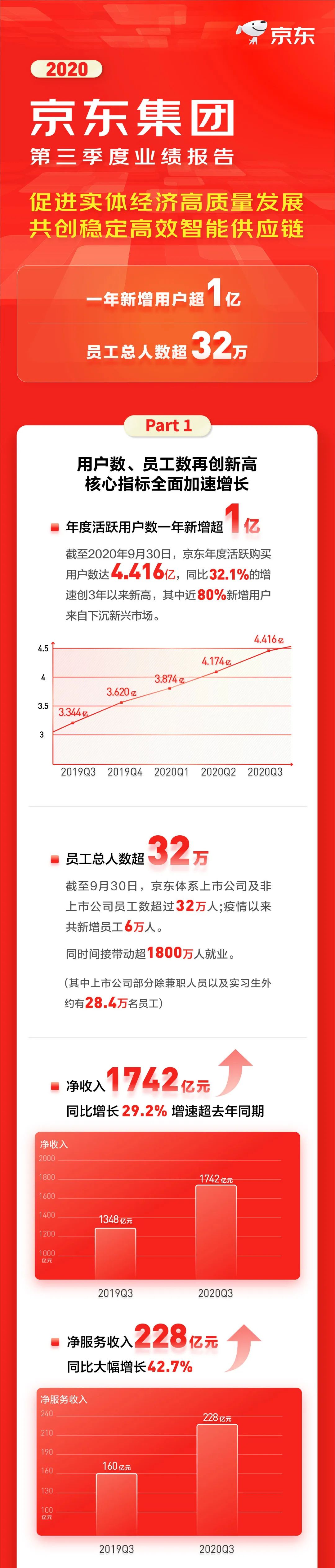一张图看懂京东集团2020年第三季度业绩 一年新增用户超1亿 员工人数超32万