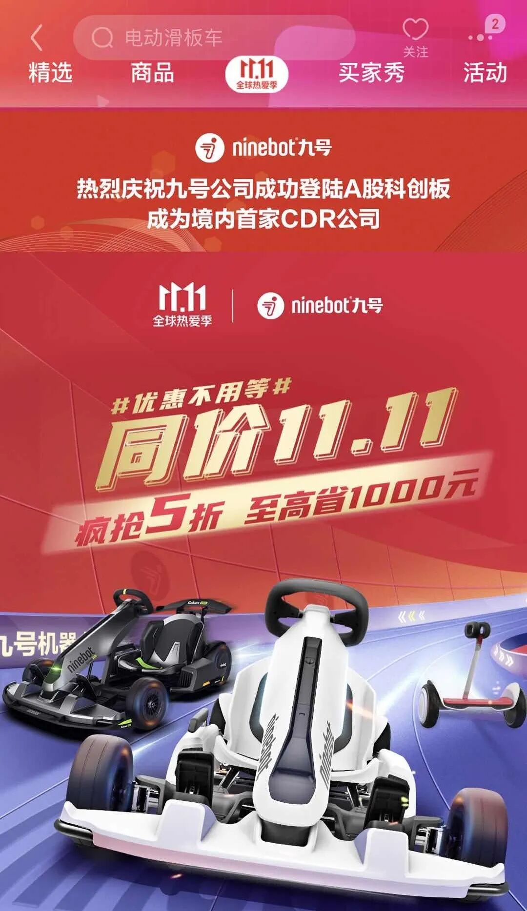 就在采访义楠的第二天,九号公司正式登陆科创板,成为中国境内上市企业中“VIE+CDR第一股”。京东页面上也同步上线了庆祝上市的专属活动,粉丝很买单。