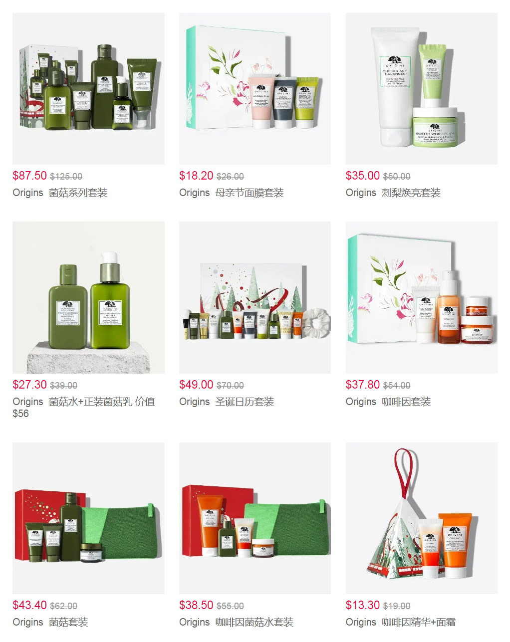 另外,Origins满$35送灵芝面膜中样,满$55送护肤5件套,满$85送自选正装精华;满$100送护肤5件套。
