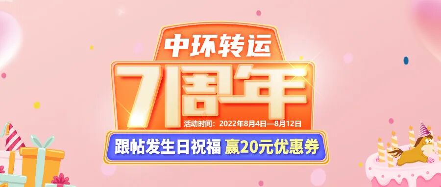 在中环转运指定平台主题帖下跟帖为中环转运留下生日祝福,既有机会获得20元优惠券啦!