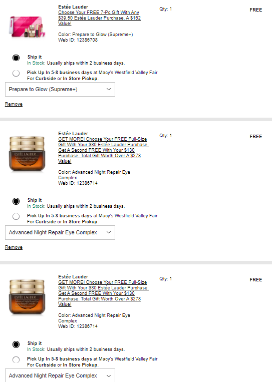 雅诗兰黛,订单满$39.5送自选好礼6件套,最高价值$156;满$80加送正装自选面霜,好礼总价高达$220