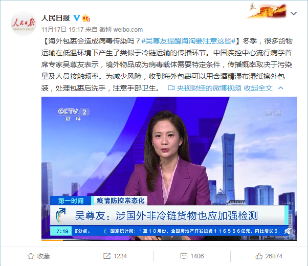 吴尊友还表示:海淘确实有收到被病毒污染包裹的风险。如果希望减少风险,收到包裹后可以用含酒精擦拭包裹外包装,处理完包裹以后要洗手,不能直接用触摸包裹的手接触眼睛、口鼻等部位。注意手部卫生的话,是可以安全海淘的。