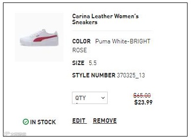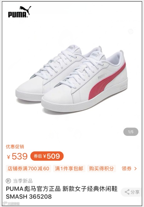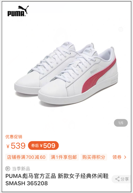 比如彪马这款Carina女款小白鞋