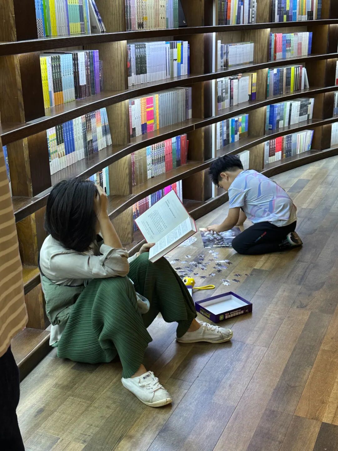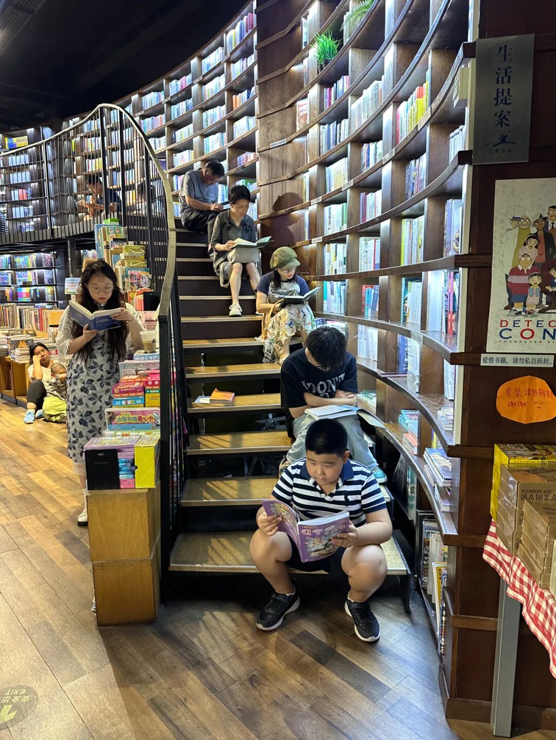 浏览了所有书架之后,当我想翻阅《DK时间线上的全球史》,不仅消费区一座难求,包括每一个角落、甚至楼梯台阶上,也都有了“主人”。