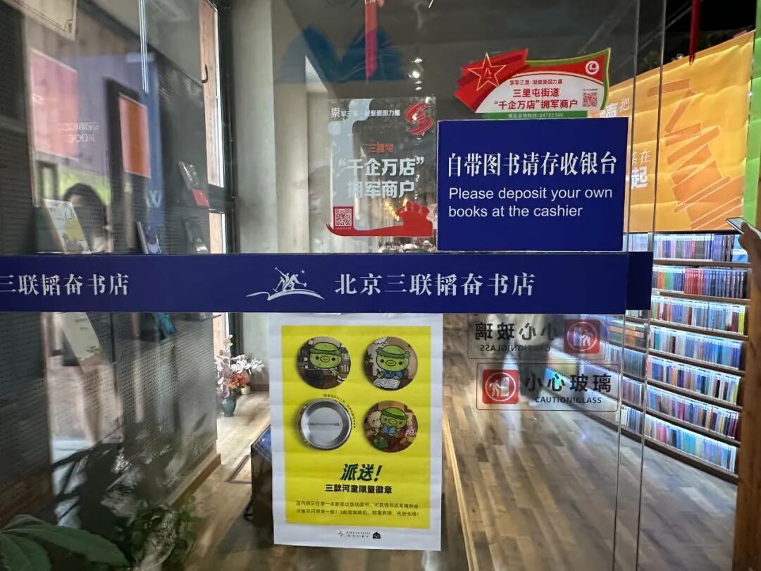 在三联书店的门口,细细打量店面。不是因为它有多么精致,而是感觉它普通得几乎有些粗糙了。