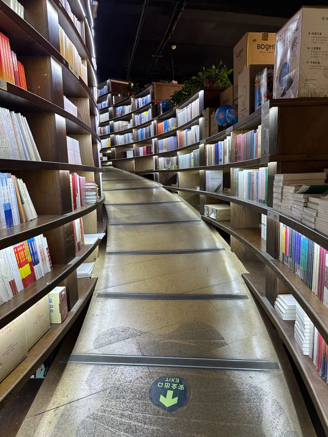 暗灰的水泥墙壁,陈旧的木色地板,木色书架,连灯光都是昏暗的。
