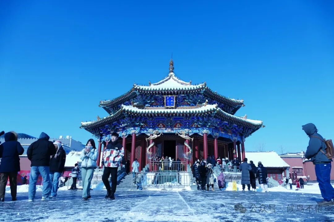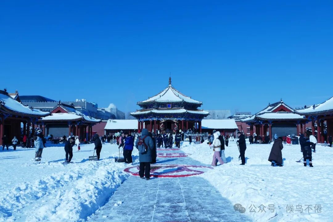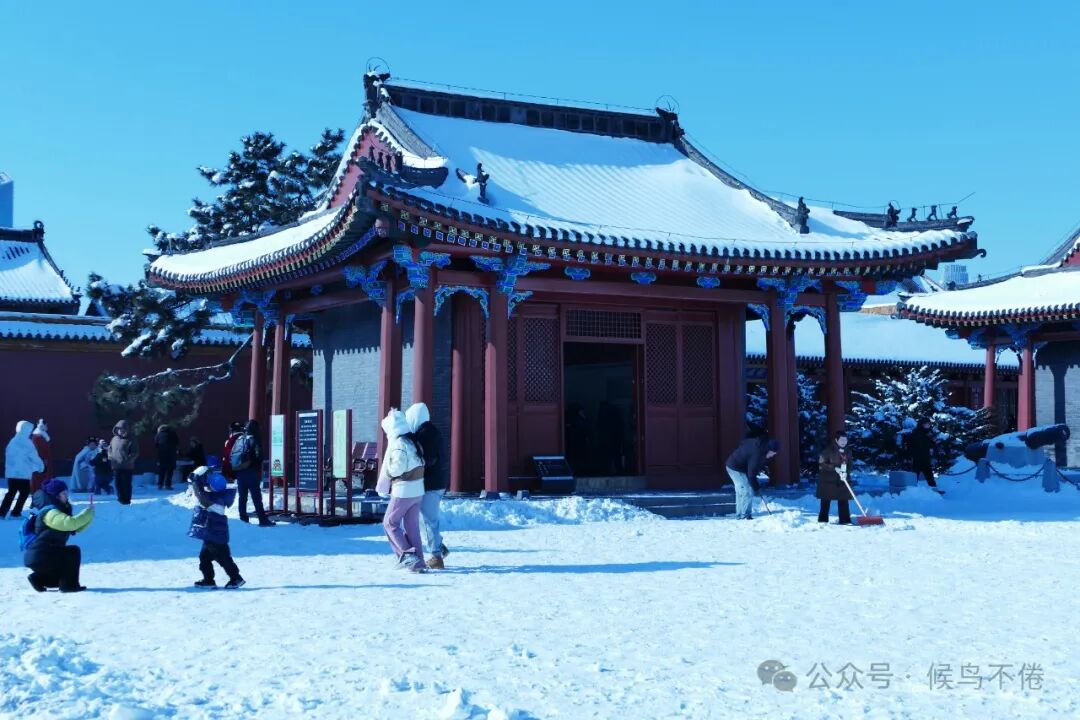 因为需要时时注意脚下,转悠了一个半小时,不过才看了崇政殿,大政殿和凤凰楼。虽然阳光明媚,手和脚都有些被冻僵的感觉。那些珍贵的馆藏文物,留待下一次细细欣赏吧!