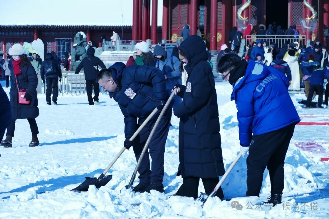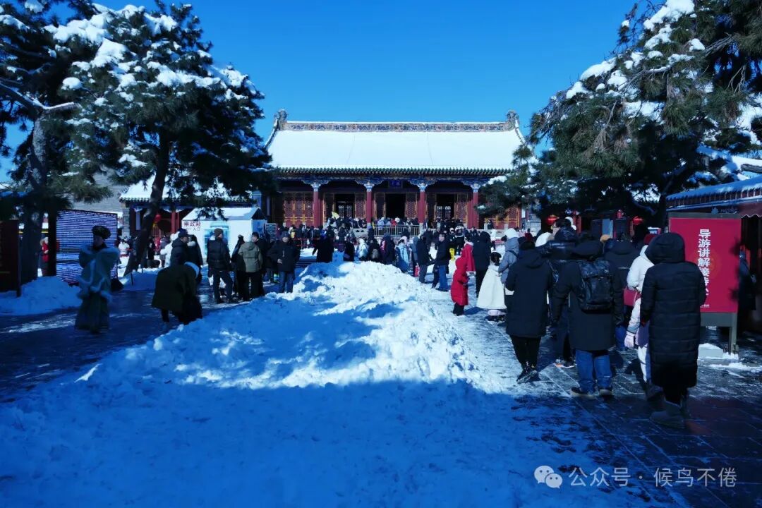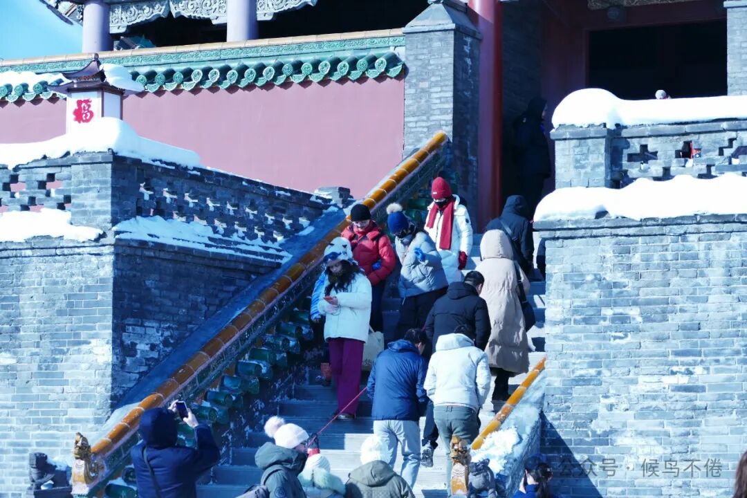 游客们在忙着拍照,工作人员在忙着除雪。今天,最不省心的游客可能是我。在德氏冷饮的售货亭买了一只冰糖葫芦之后,跟售货员说,你先别给我,帮我拿一下,我拍个照片;在凤凰楼的出口,担心太滑,犹豫着不敢下楼梯,明知故问地跟站在出口处的工作人员搭话,“是从这儿下去吗?”对。“是不是挺滑?”你扶着点儿。“你能扶我下去吗?”小伙子爽快地答应了,还善解人意地为我开脱,“有些人就是会恐高......”我哪里是恐高,我是恐“滑”。
