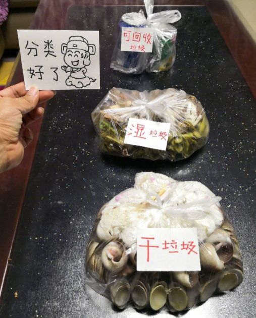 有网友就照着垃圾分类图,把一顿饭完美分类