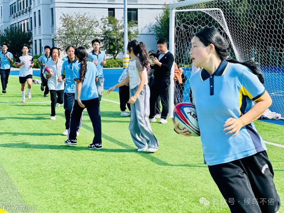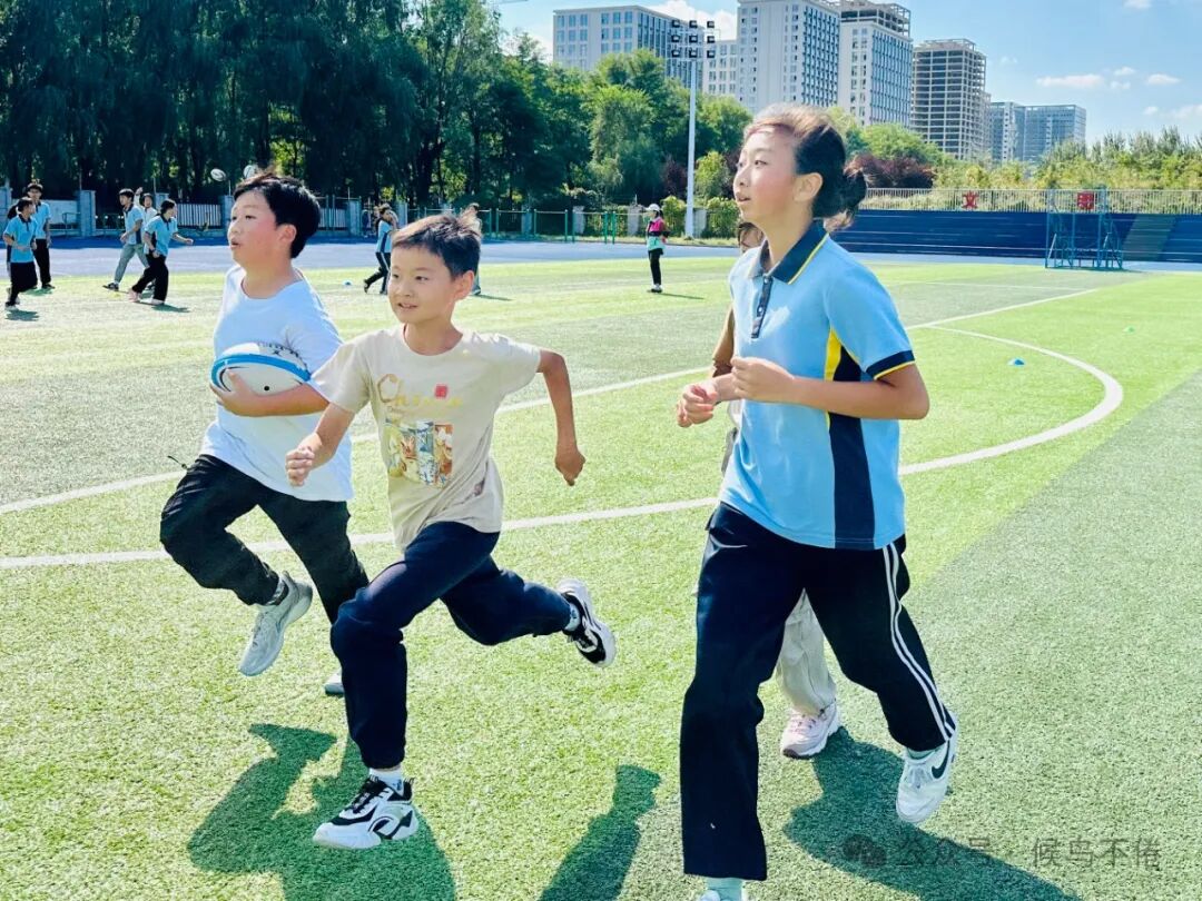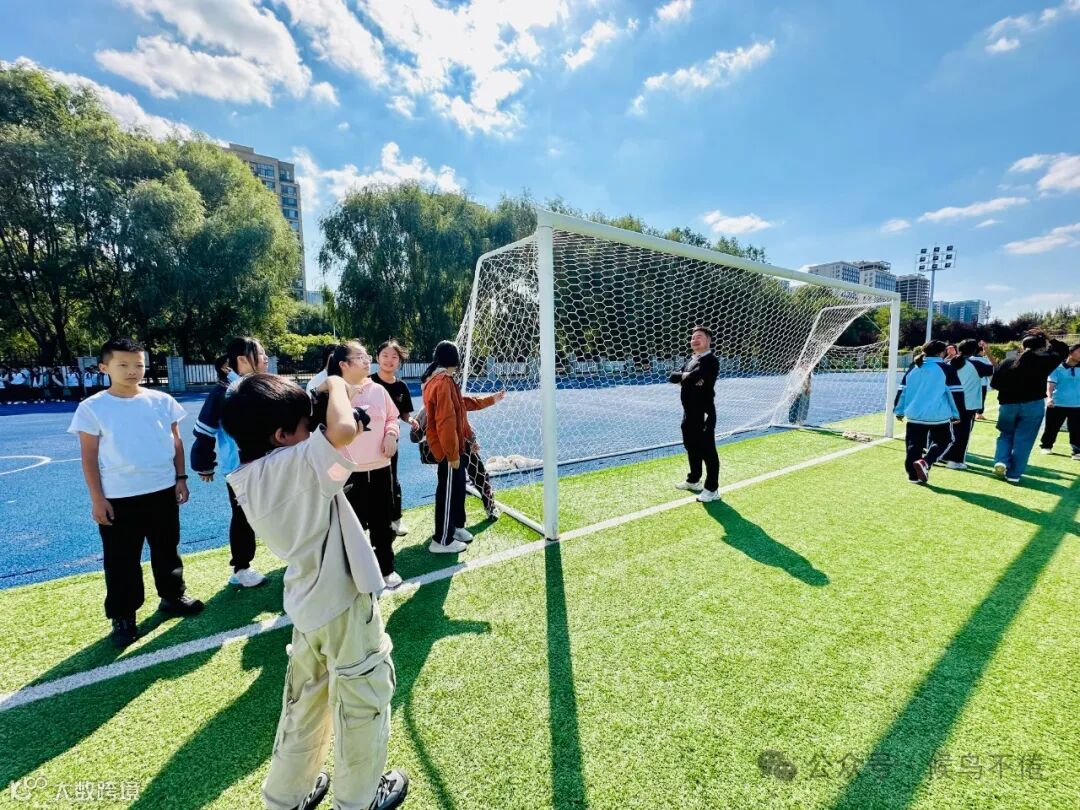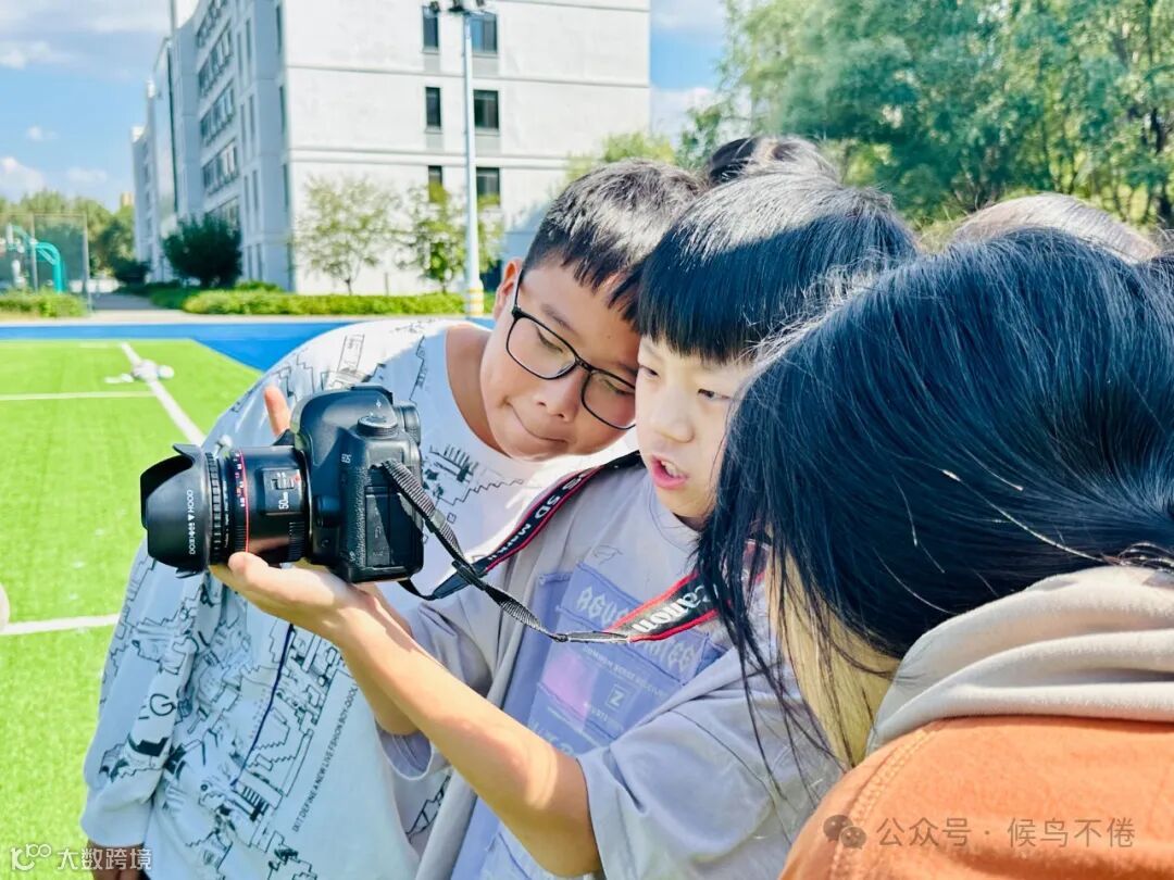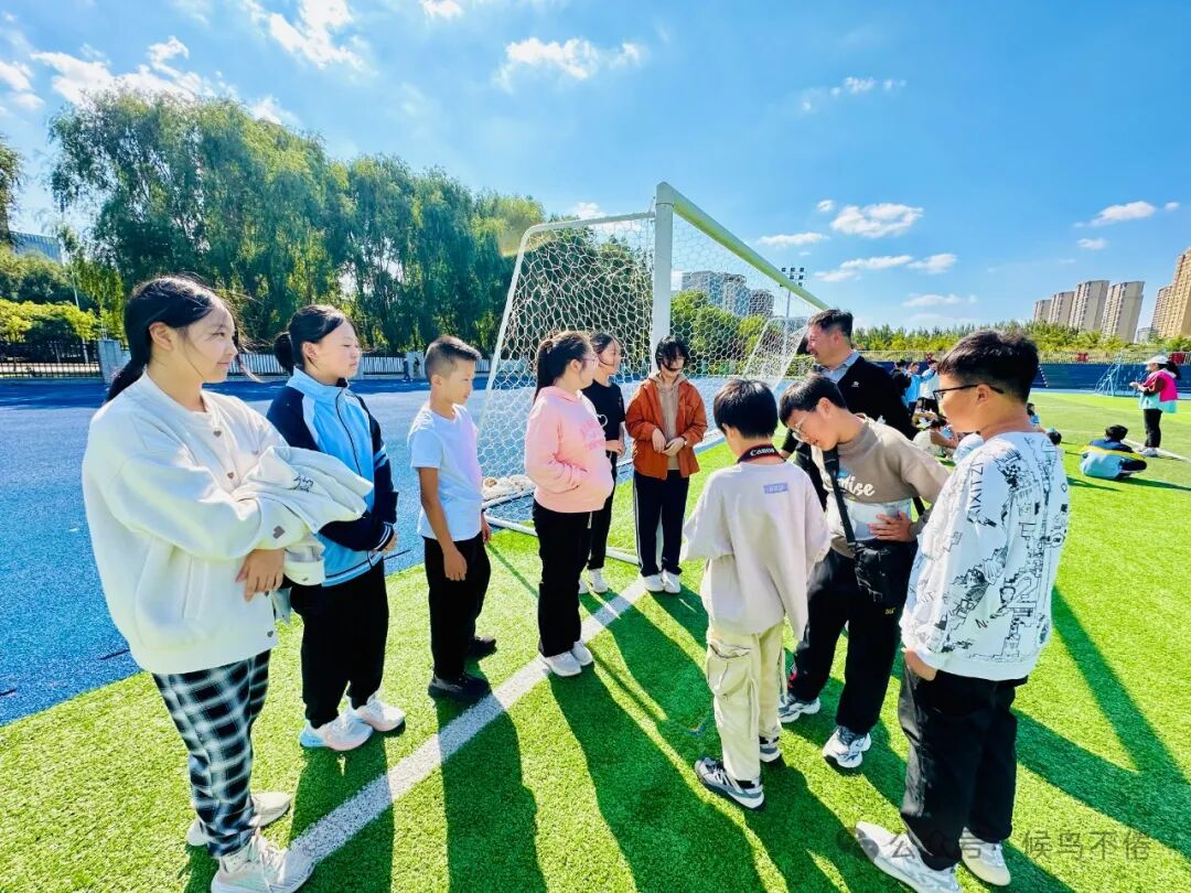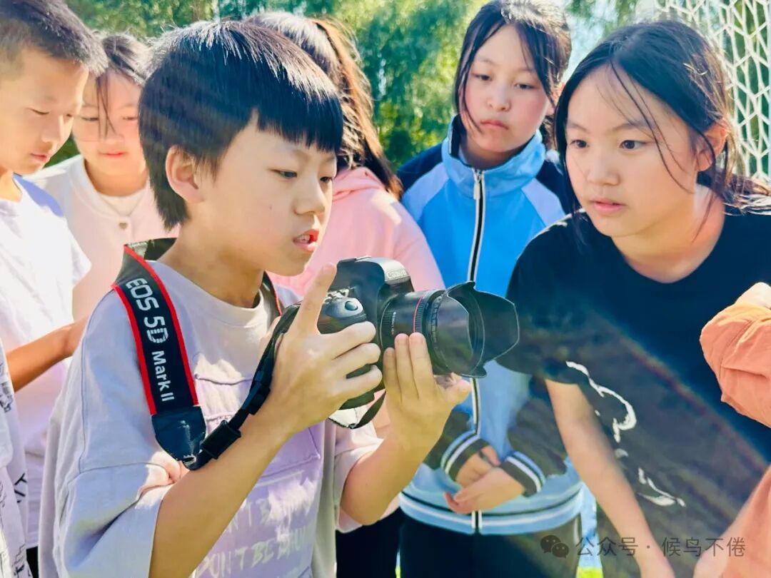 走出体育馆,远远看见刘莎莎老师负责指导的橄榄球社团。队员们成了摄影社团的免费人像模特。团长唐悦淇小朋友,也是六年级,一边端着相机,一边忙着讲解。贾老师凑过去,申请拍照。