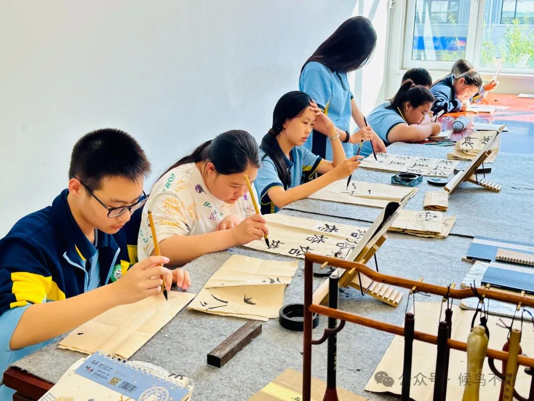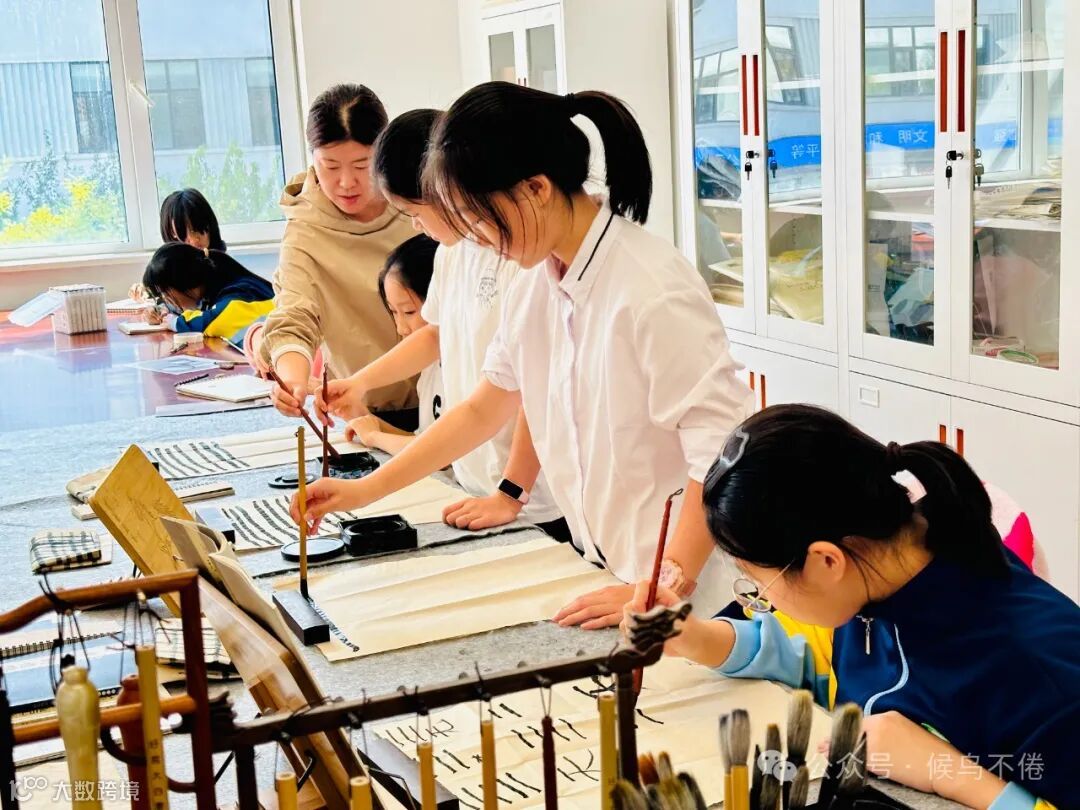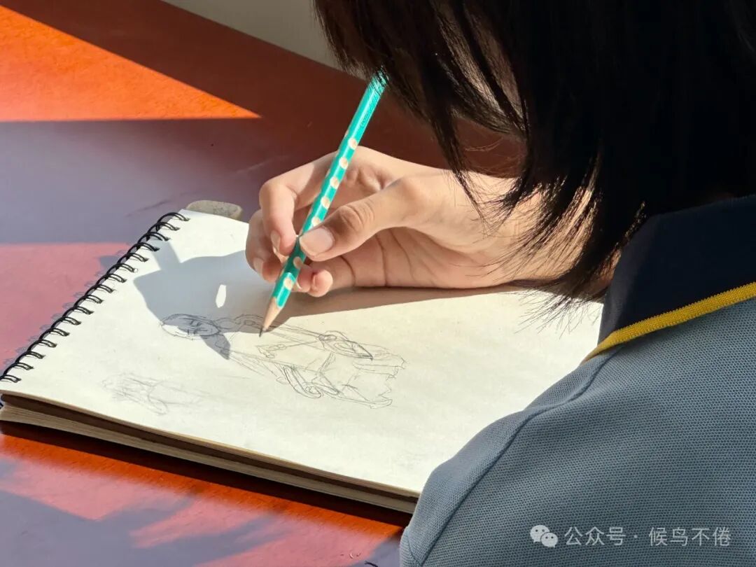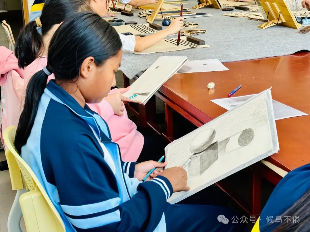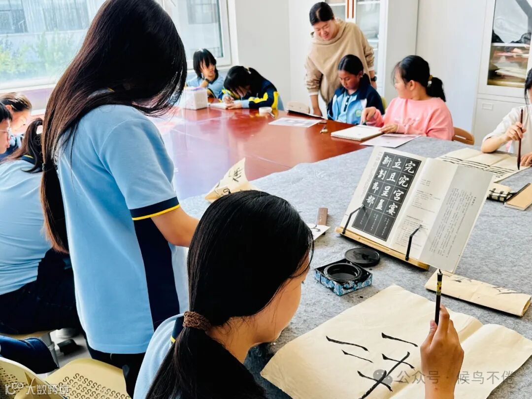 所有社团中,“待遇”最高的当属李欢欢老师负责指导的书画研习社,她和孩子们有一间专属的社团活动室。欢欢老师的手机播放着《欢乐颂》作为背景音乐,正午的阳光透过玻璃窗,洒在孩子们的脸上。