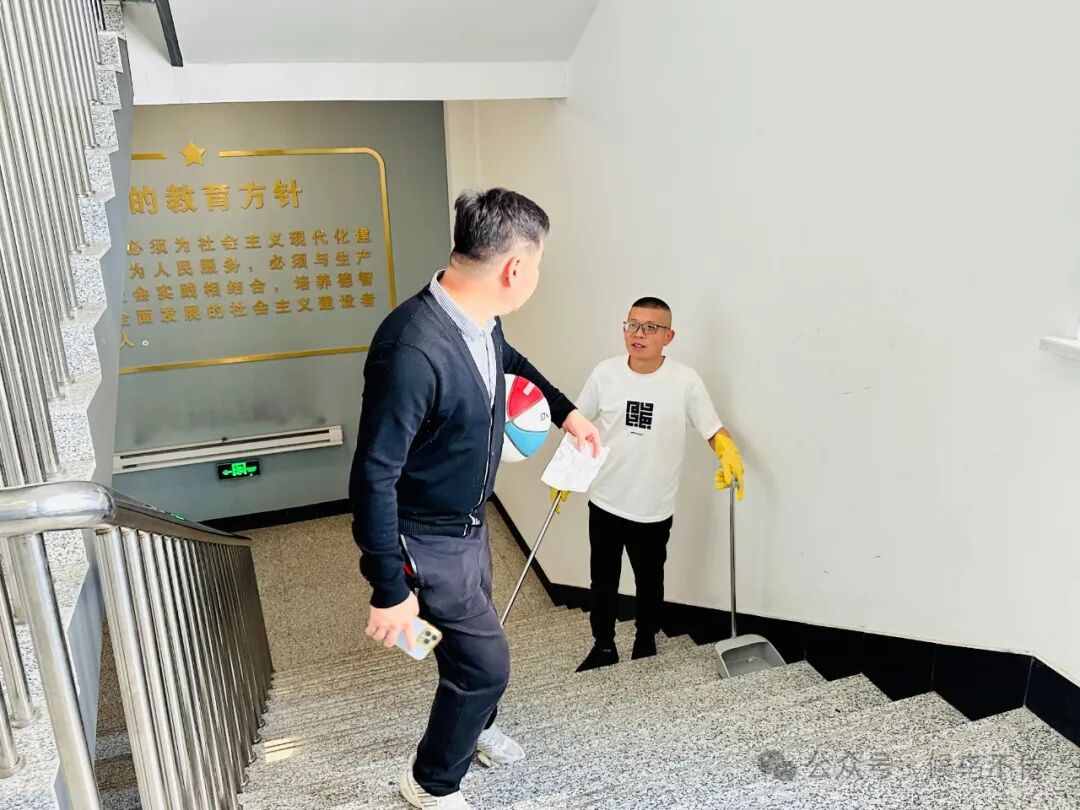 眼尖的贾老师发现两座教学楼之间的篮球场地有几个男生在玩儿篮球,立即叫停,因为会影响高中的哥哥、姐姐们午睡。孩子们被“罚款”一个番茄币,篮球也被铁面狠心的老贾抱在怀里。可怜的孩子们,别急,贾老师一定会帮助你们找个合适的地方。在教学楼门前,三个男声喊住贾老师,报告说他们发现了马蜂窝!领着贾桐去看,贾老师拍了照上楼,正好遇见保安师傅,叮嘱他想着处理一下。