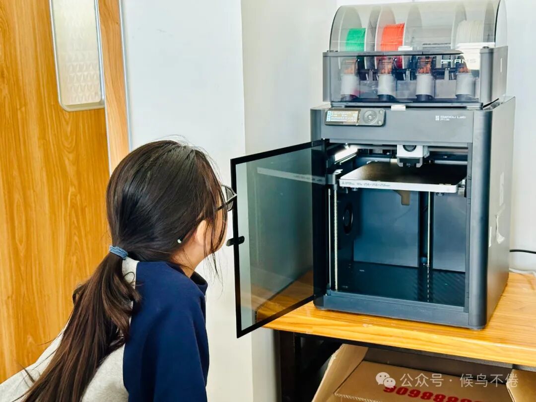 计算机教室里,3D打印社的几个同学兴致盎然地围着一脸严肃的高虹老师,耐心等待他们的作品问世。