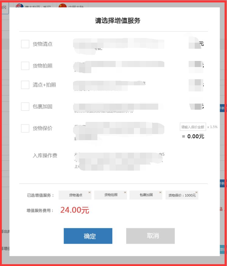 简洁明了,这是一个很重大的突破!每一项增值服务的说明与价格都清晰的展现出来。通过勾选的方式便捷完成服务选择。对比现在的看看,我不禁竖起大拇指!(收货地址选择也采用统样的方式)