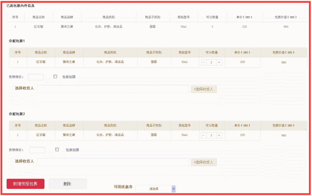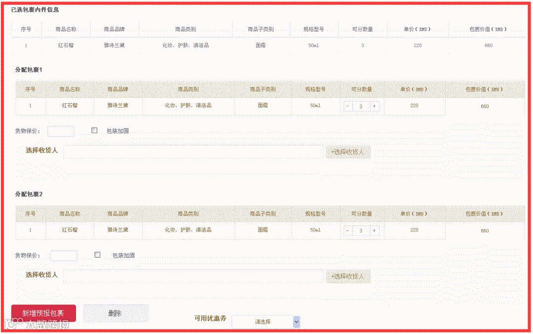 敲黑板,重点来了!坐在前排看不清的同学,请点击图片放大看。现在分配包裹只需要点点鼠标,增减数量即可!告别繁琐的文字录入,再也不会出错!