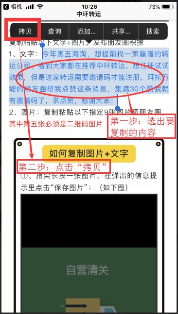 ②、点击“拷贝”后,回到自己的朋友圈粘贴文字内容(第二步)