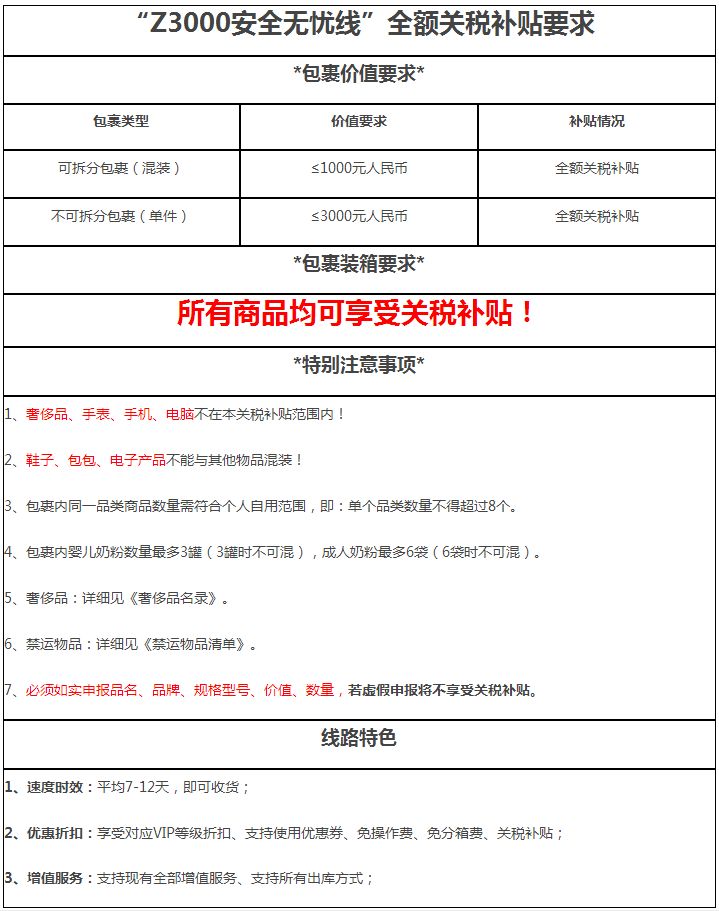 三年的风雨兼程见证了中环转运的成长,三年的携手共进见证了中环人拼搏进取开拓创新的足迹,当然更离不开各位中环家人的鼎力支持!为答谢新老客户对我们一直以来的信任,现对Z3000无忧线商品分类再度升级,前所未有,重磅献礼回馈你们的厚爱。具体内容如下: