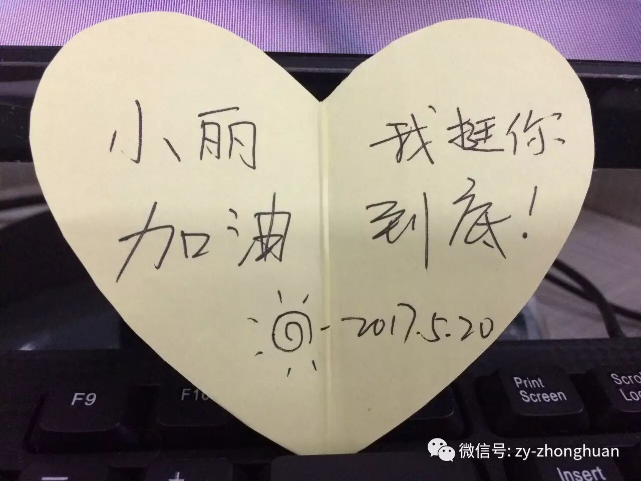 鲜花很美,连包装纸都搭配的那么好看。鲜花上的卡片没有署名,只写着:小丽加油,我挺你到底!