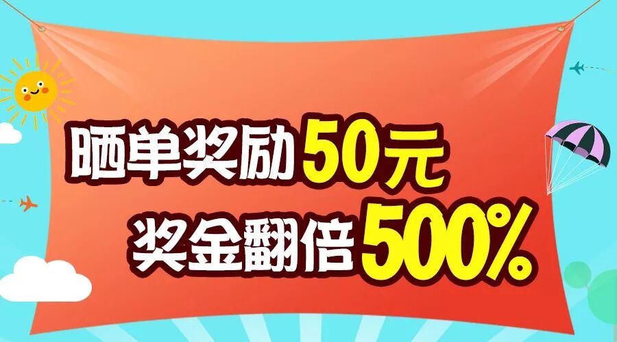 活动主题:晒单奖励50元,奖金翻倍500%!