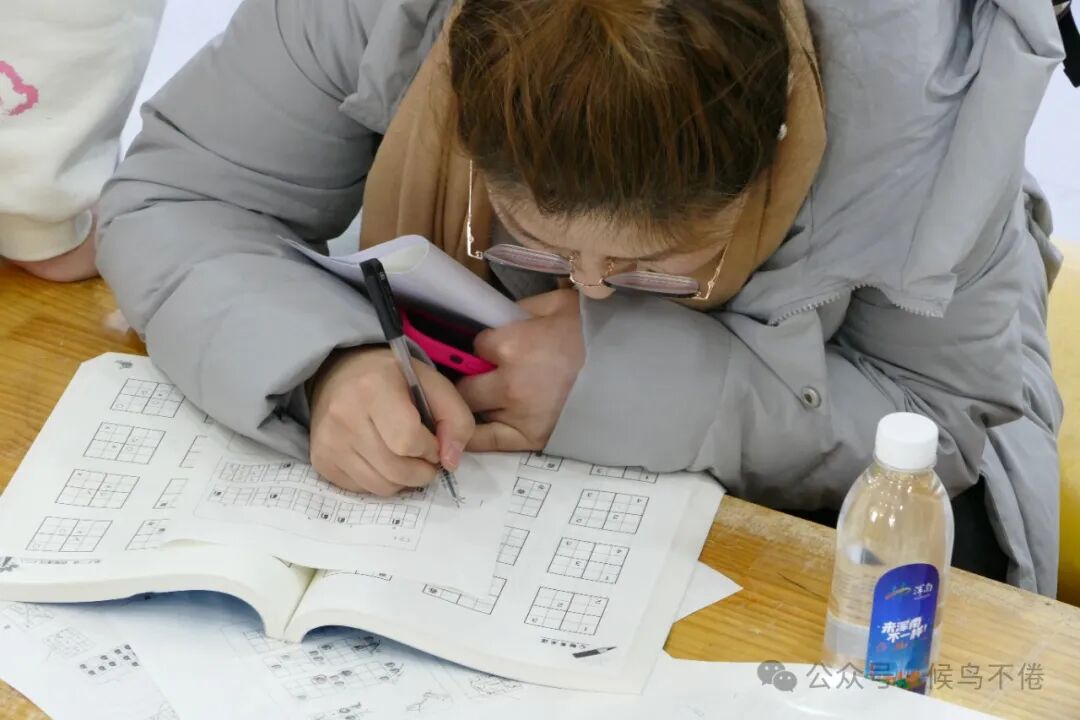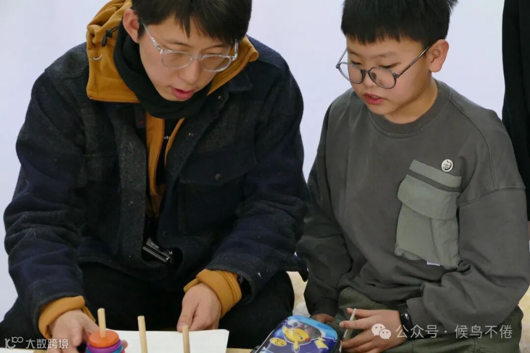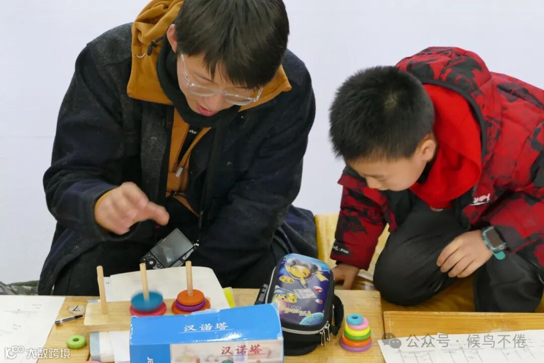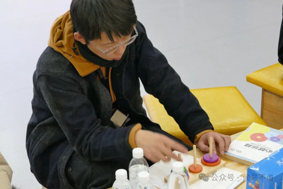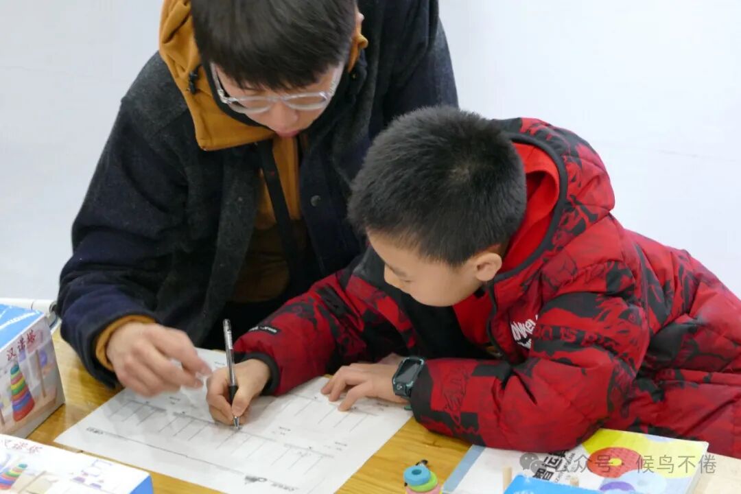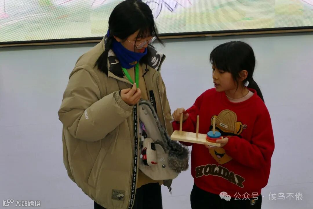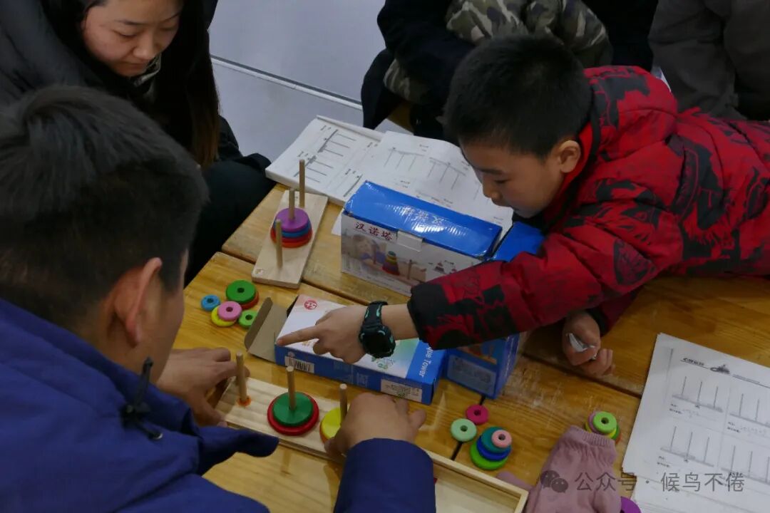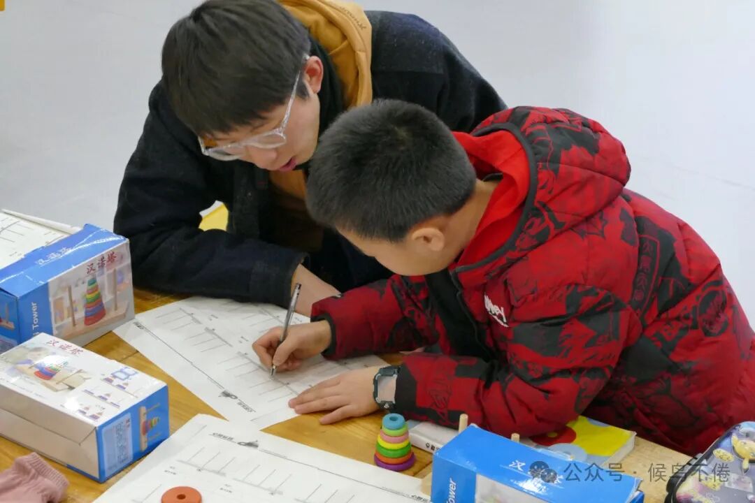 孩子们也终于有了发放灵动币的权力。在心智多米诺组,我看到一位“同学”做对了一道题,就获得了一元灵动币。我问小先生,你们平时要完成好几页才能得到一个灵动币,现在完成一道题你就发一个灵动币,是不是太多了啊?小先生说,“不多,这道题对于初学者来说,有一定的难度!”哦,先以鼓励为主,培养兴趣,“诱敌深入”。