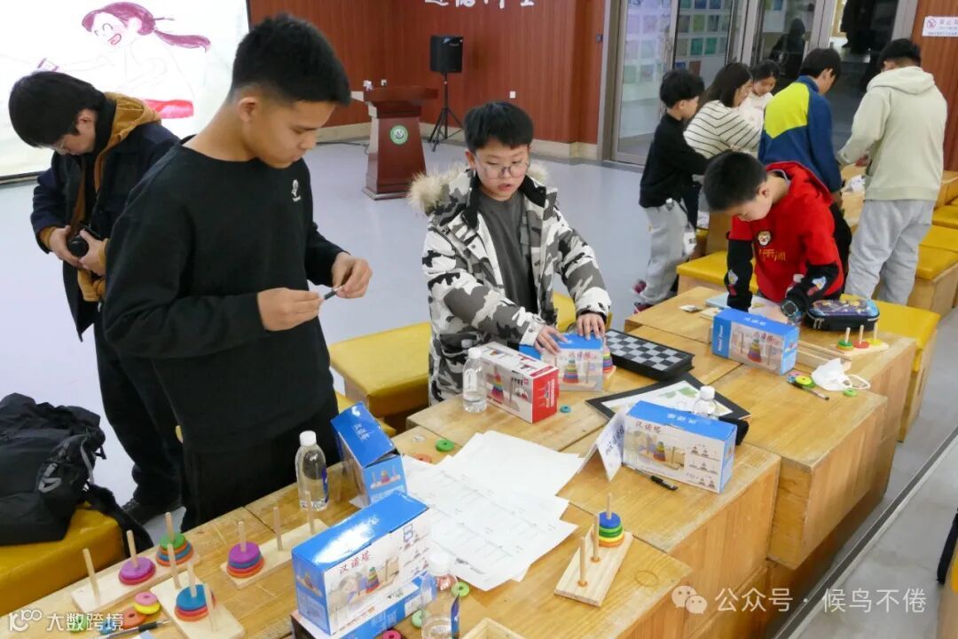 心智多米诺,心智运算(汉诺塔),国际象棋,汉字游戏,四巧板五门脑动力课程分组同时授课。